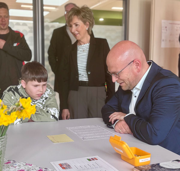 Worte, die auch Landrat Christian Müller berührten. Auch er kam eigens in die Förderschule und überzeugte sich bei einem Rundgang von dem gelungenen Bauvorhaben, in das der Landkreis Prignitz als Bauherr 5,1 Millionen Euro investiert hat. „Mit dem Neubau ist ein modernes, ökologisches Gebäude mit guten Rahmenbedingungen für die Schüler und die pädagogischen Fachkräfte entstanden. Bei meinem Besuch konnte ich einen guten, persönlichen Eindruck von der Lernatmosphäre gewinnen. Beeindruckt haben mich die Worte des 14-jährigen Cedriks und sein Dankeschön“, freute sich Landrat Christian Müller.