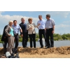 Besuch am 10.06.2013: Bundestagsabgeordnete Dagmar Ziegler, Manfred Metzger (THW), Landrat Hans Lange, Bundeskanzlerin Angelika Merkel, Ministerpräsident Matthias Platzeck, Bürgermeister Dr. Oliver Hermann (vlnr)